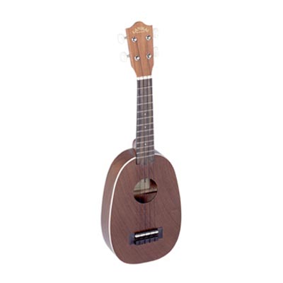 Eine Sopran-Ukulele im Pineapple-Design. Der Hawaiianer Samuel Kamaka kombinierte im Jahr 1927 als Erster Ananas und Ukulele. Seitdem wird die Ukulele mit der außergewöhnlichen Form immer beliebter.
