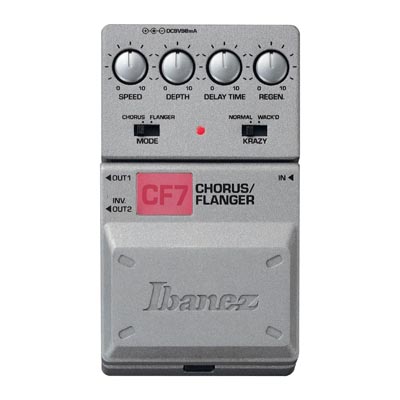 Der CF7 vereint die beiden wichtigsten Modulationseffekte für die Gitarre in einem Gerät. Chorus und Flanger-Mode können über den Mode-Select-Schalter angewählt werden. Der Krazy-Schalter ermöglicht die Wahl zwischen einer normalen Modulation oder dem Wack'd-Mode, wenn es ein bischen mehr sein soll.